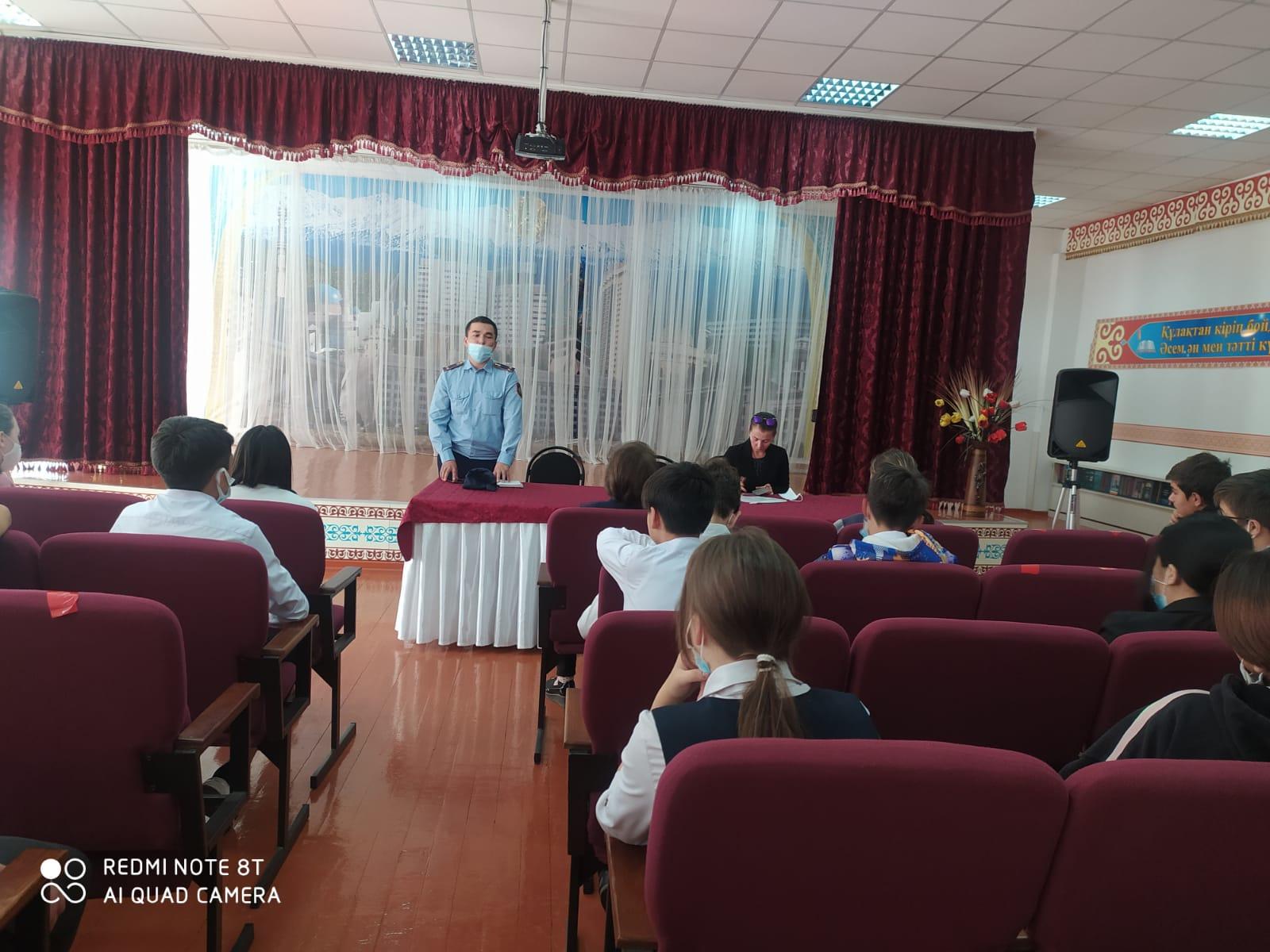 28 сентября 2021 года организована встреча с врачом-наркологом КГП на ПХВ "ЦПЗ" Трубниковой Анной Александровной и с инспектором УИП ОЮП ОМПС УП Медеуского района провели профилактическую беседу с учащимся 7-9 классов на тему: "Профилактика и последствия употребления наркотиков, алкоголя и токсических веществ среди подростков".