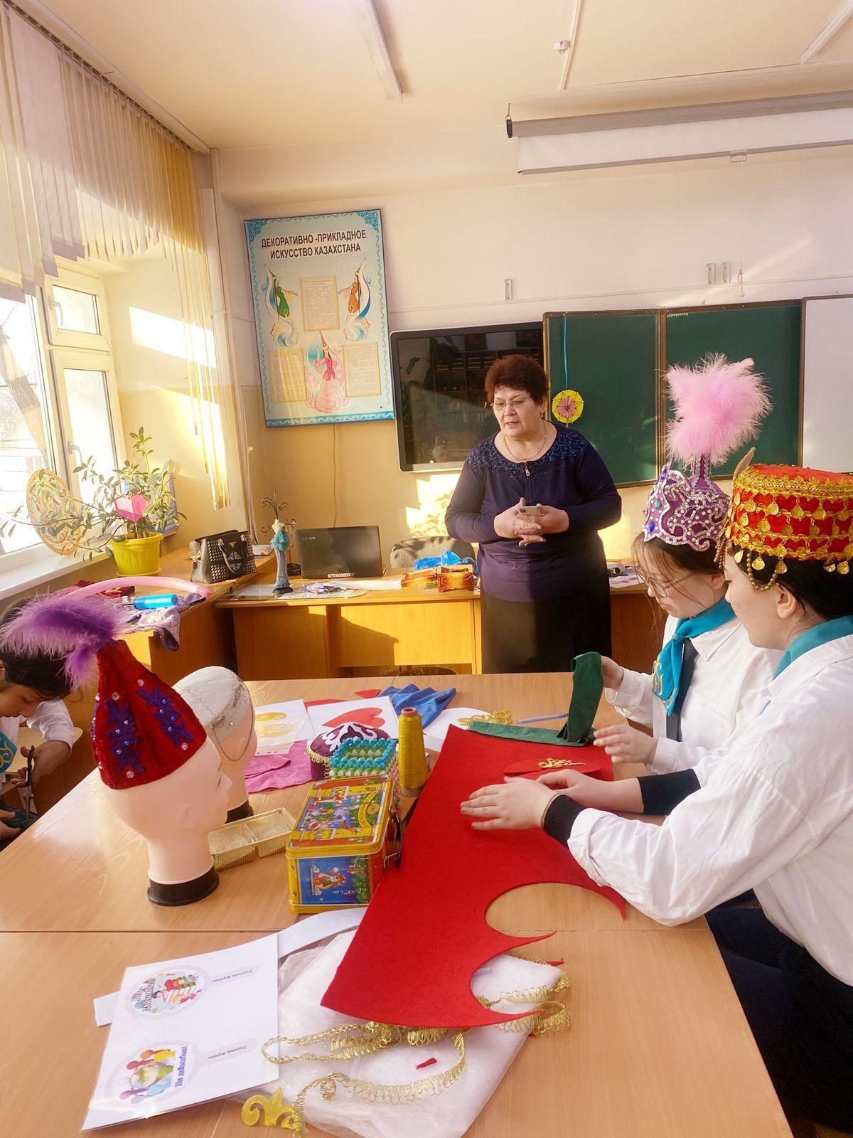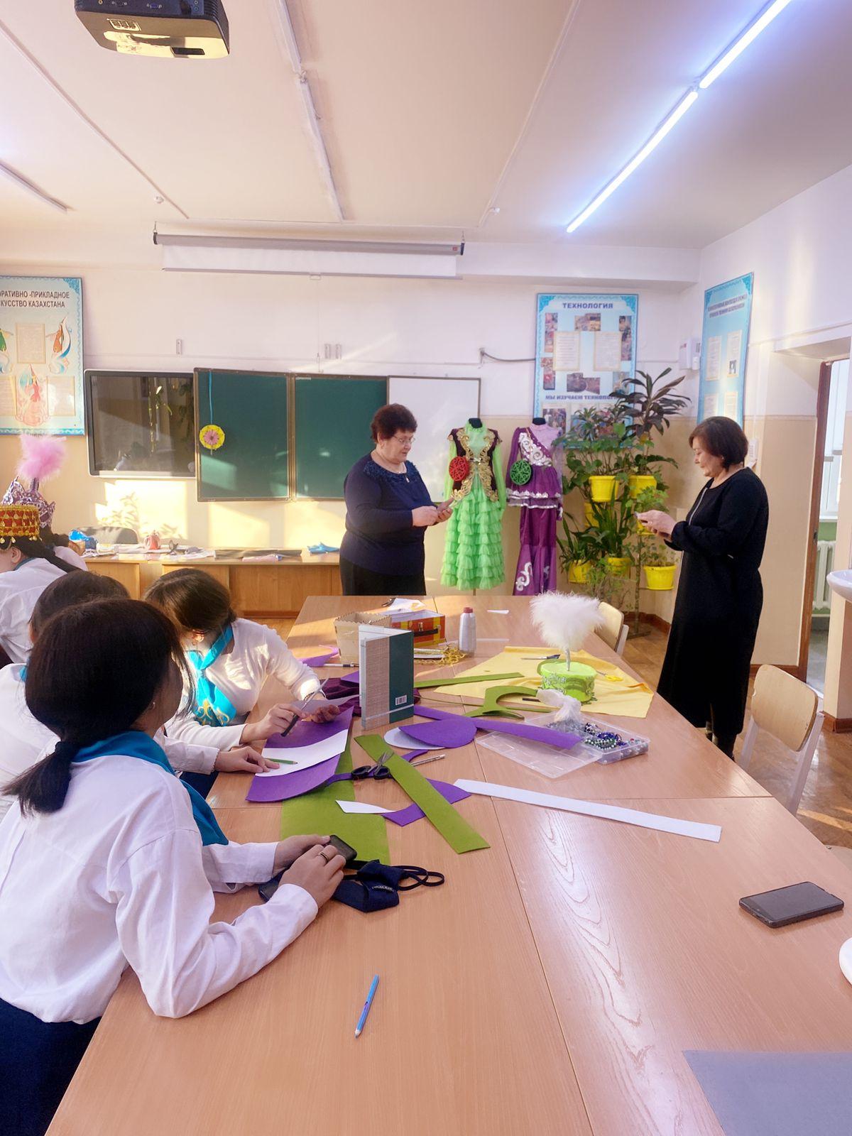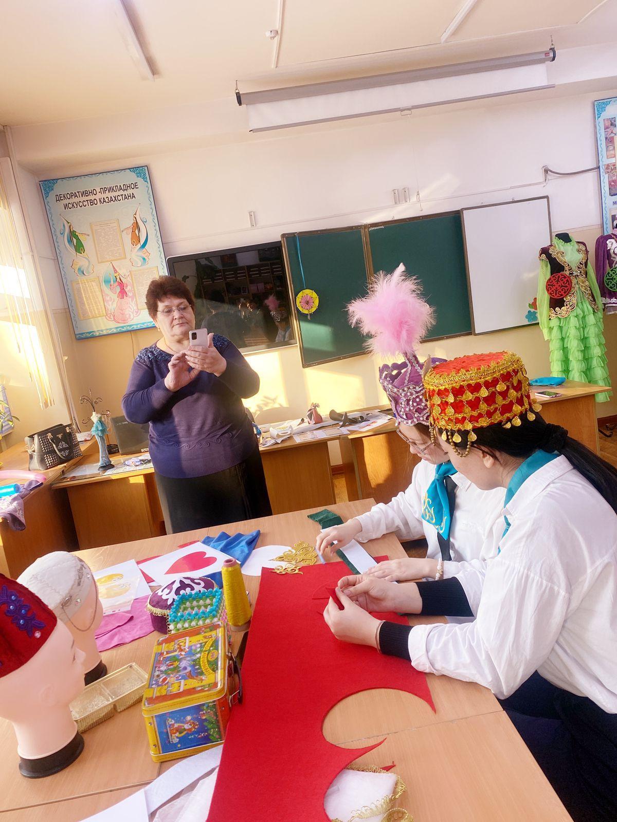 20 декабря в рамках декады Эстетических дисциплин, учитель художественного труда нашей школы Борху Адигул провела открытый урок на тему «Национальная одежда в этностиле». В ходе урока учащиеся придумали новый головной убор и высказали свои идеи. Также шили одежду разных этностилей, украшали изделия.